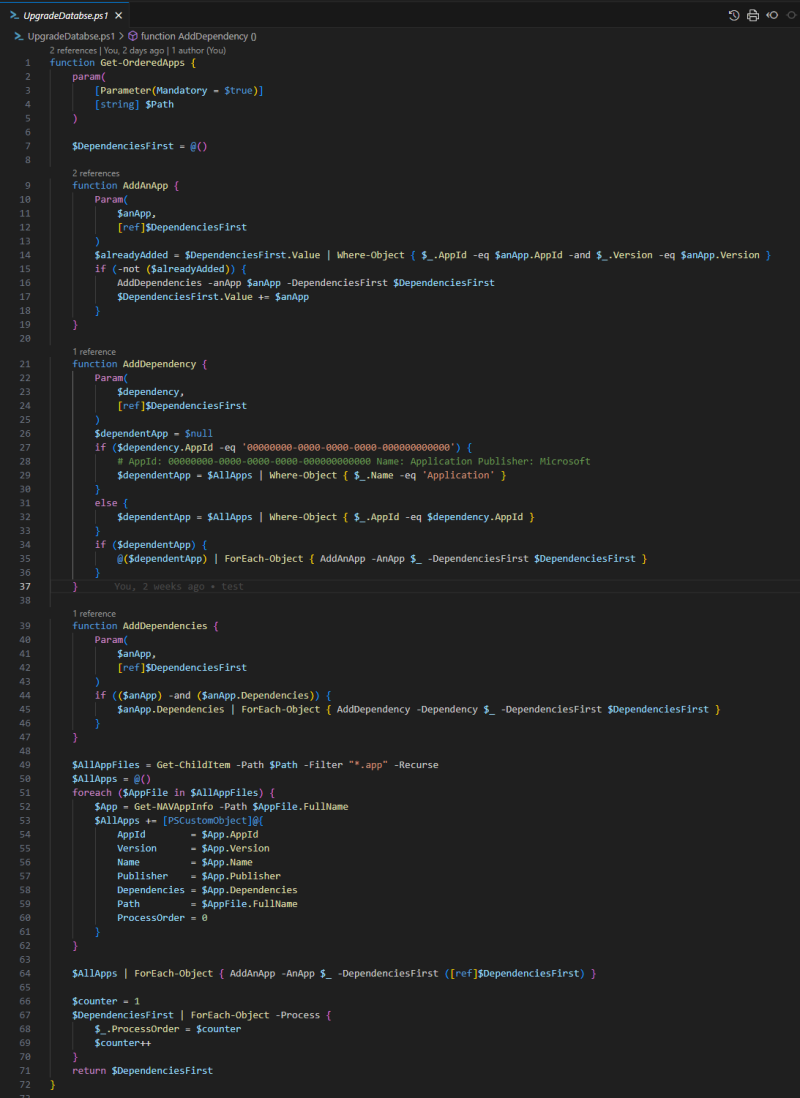 Let's take a look at what is inside that script. At the very beginning, there are some helper functions designed to assist in upgrading/installing apps in the correct order.
