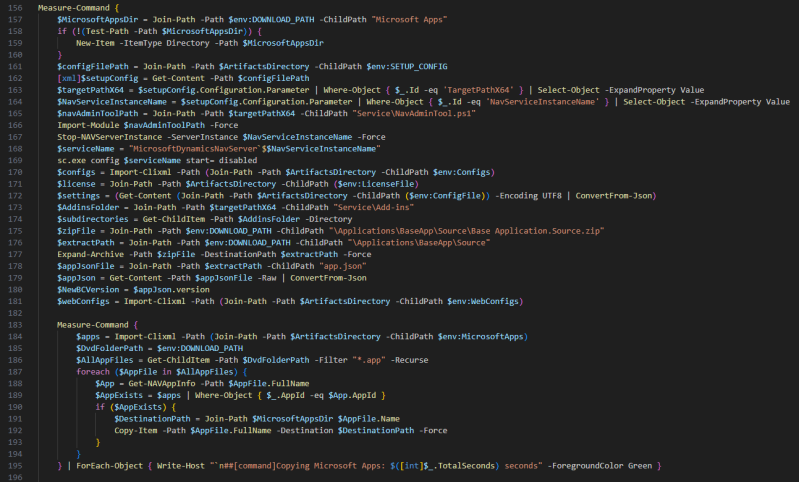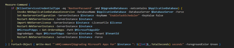 } | ForEach-Object { Write-Host "`n##[command]Upgrading Microsoft Apps for" $instance ": $([int]$_.TotalSeconds) seconds" -ForegroundColor Green }