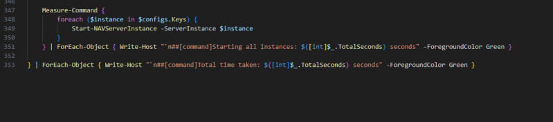 } | ForEach-Object { Write-Host "`n##[command]Starting all instances: $([int]$_.TotalSeconds) seconds" -ForegroundColor Green }